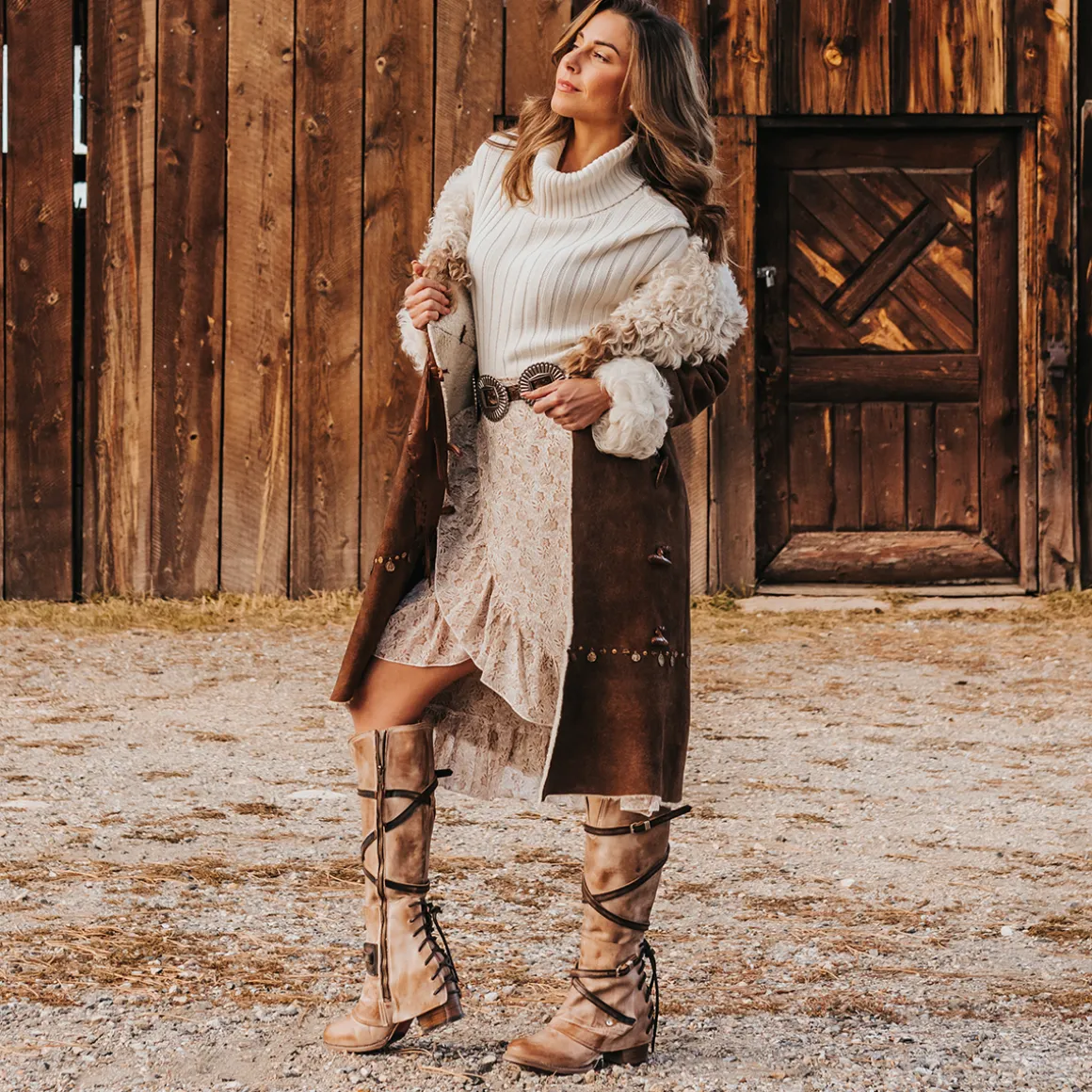 Meet Cassius, An Eye-Catching Addition To Your Collection. Its Unique Back-Lacing Ankle Overlay Is Complemented By Stunning Leather Straps And Silver Buckles That Wrap Its Tall Shaft. A Full Inside Brass Zip Closure Allows For Effortless Wear.