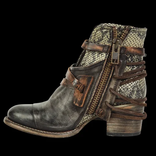 Crafted With A Leather Overlay To Partially Cover A Plunging Front Dip, Crue Is A Versatile Freebird Classic That Is Bound To Stand Out. This One-Of-A-Kind Staple Can Be Styled With Or Without Socks And Includes Unique Back Lacing, Adjustable Leather Straps With Silver Buckles, And An Inside Brass Zip Closure. Make Your Whole Crue Stop And Stare By Styling With Your Everyday Raw Hem Denim.