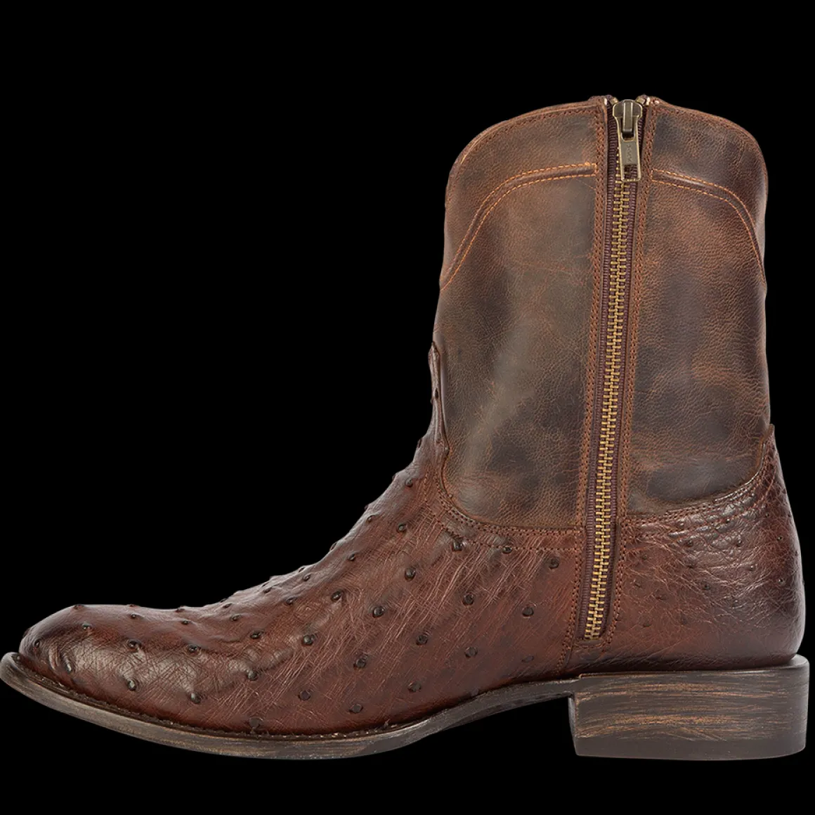 This Ain’T Our First Rodeo But Next Time You’Ll Be Wearingdesperado. Designed With Genuine Exotic Ostrich And Python Leathers, This Mid Calf Boot Hits Just Right.Featuring A Single Exterior Pull Strap And An Inside Working Brass Zip Closure.