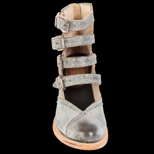 Felicity’s Elegant Western Structure Is Adorned With Silver Stud Embellished Leather And Adjustable Straps For The Perfect Customizable Fit. Finished With A Working Back Brass Zip And Almond Toe, This Open Construction Shoe Isready For Any Occasion.