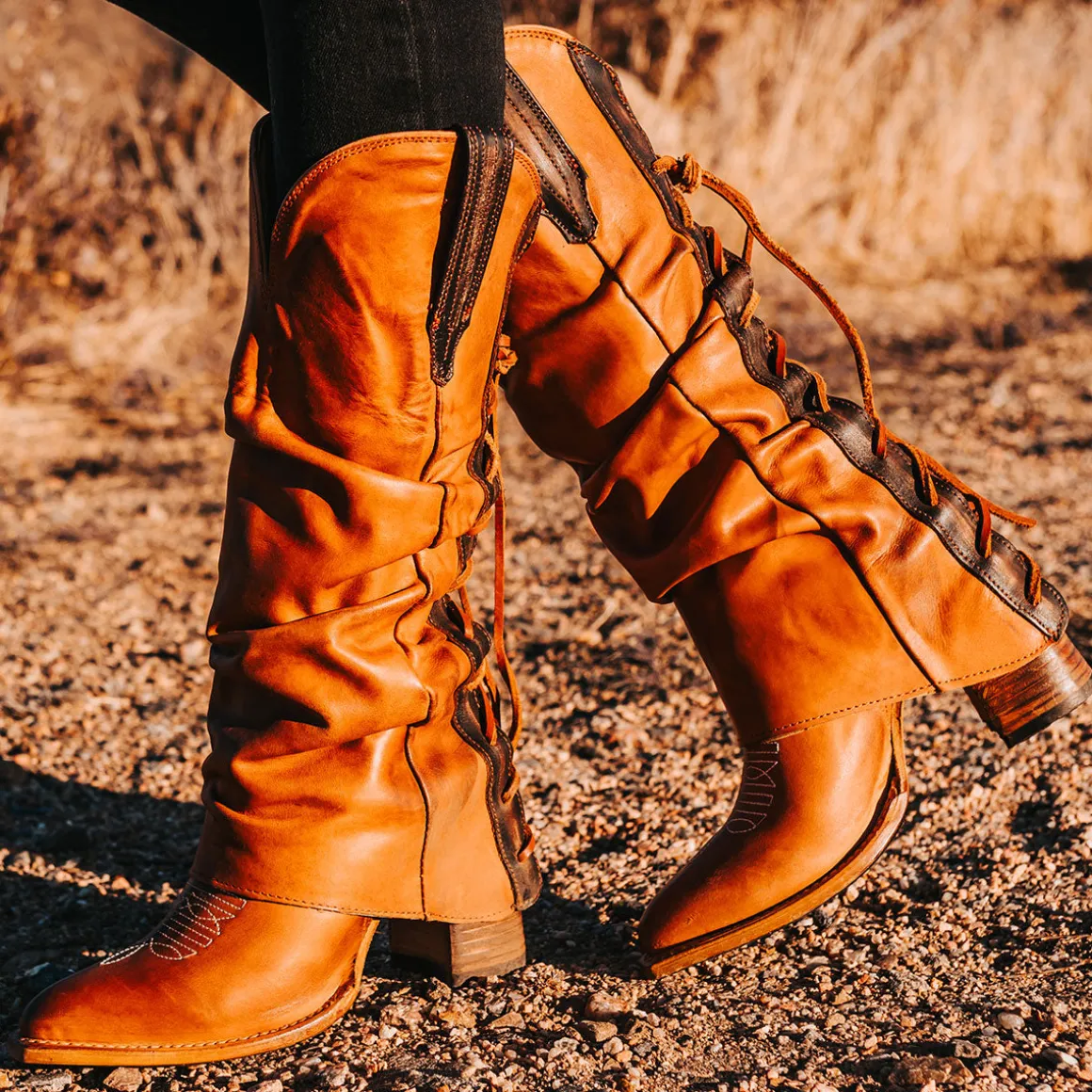 Designed With A Decorative Overlay, Jules Is Crafted With A Relaxed Silhouette And Features Anexpandable Contrasting Back Lace Panel. This Detailed Tall Boot Showcases A Pointed Toe With Traditional Stitching And Stands Upon An Elevated Flare Heel.
