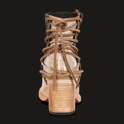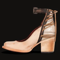 Adorned With Leather Laces And Embossed Detailing On The Back Panel, Raeanne Is Crafted With An Open Instep And Mid-Heel Creating An Effortless Look. For The Perfect Customizable Fit,This Shoe Is Finished With An Adjustable Ankle Strap And Brass Hardware.