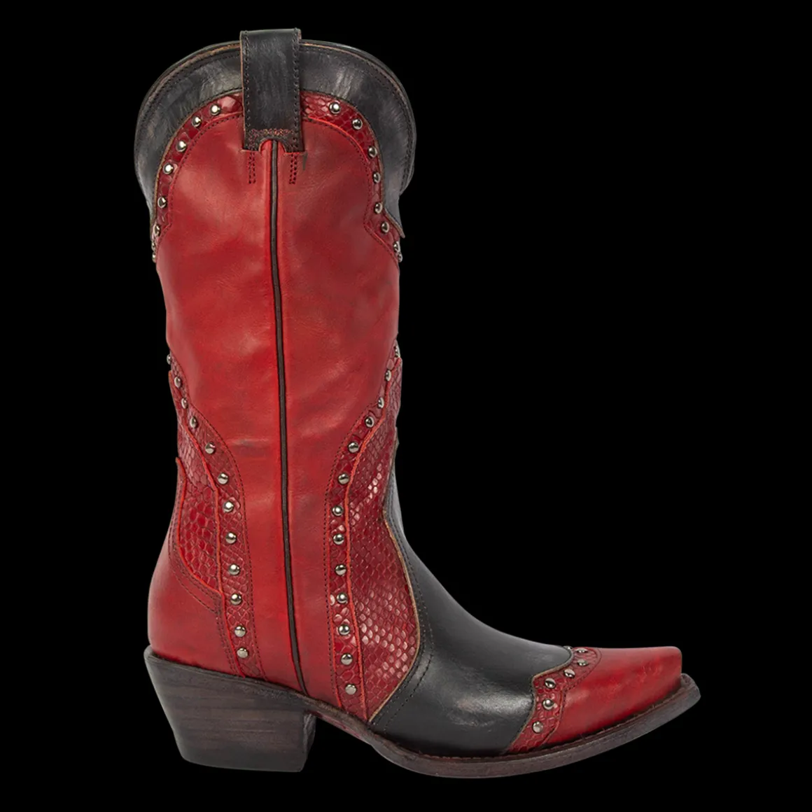 Designed With Artistic Craftsmanship, Warner Featuresembossed Leather Detailing Andmetal Studs. Sitting At Mid-Calf, Thismemorableappearance Isfinishedwith A Slanted Heel, Scalloped Front Dip, And Snip Toe. Providing Western Flair, This Boot Featuresdouble Pull Straps And An Inside Zip Closure That Allows For Ease Of Wear.