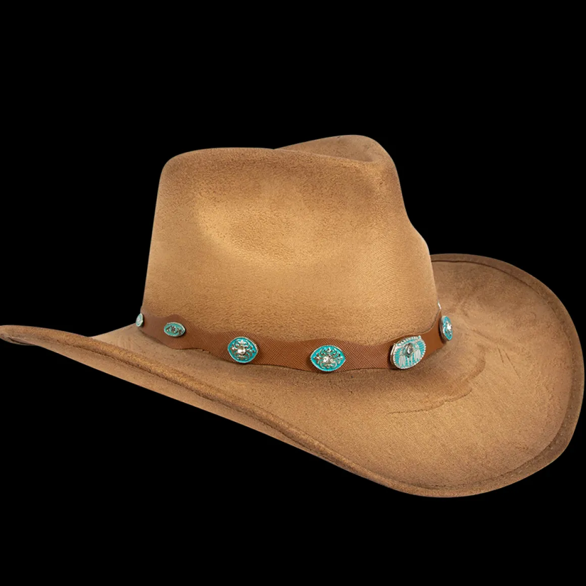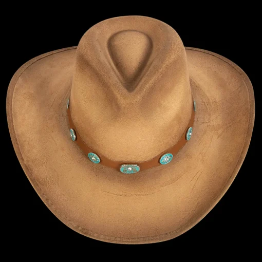 Crafted With A Western Silhouette, Wesson Features A Teardrop Crown And Upturned Brim. Touches Of Turquoise Are Found Within The Metal Engraved Band Placed Around This Classic Cowboy Hat.