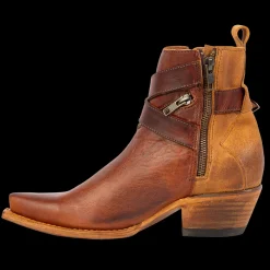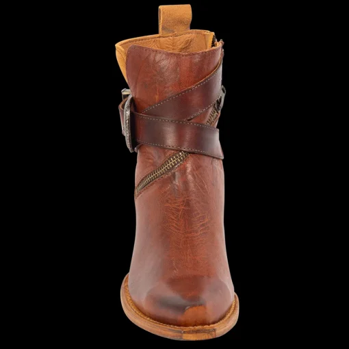 Handcrafted With Contrasting Leather And Suede Uppers, This Ankle Bootieis Constructed With A Front Fashion Zipper For Added Dimension And Texture. Framed With A Snip Toe And Low Angular Heel, Whip Takes Inspiration From Western Design And Features An Inside Zip Closure, Pull Strap, And An Engraved Buckle Strap To Ensure A Comfortable Fit.