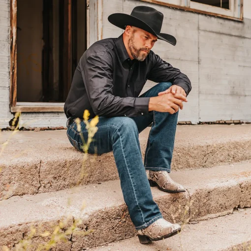 This Ain’T Our First Rodeo But Next Time You’Ll Be Wearingdesperado. Designed With Genuine Exotic Ostrich And Python Leathers, This Mid Calf Boot Hits Just Right.Featuring A Single Exterior Pull Strap And An Inside Working Brass Zip Closure.