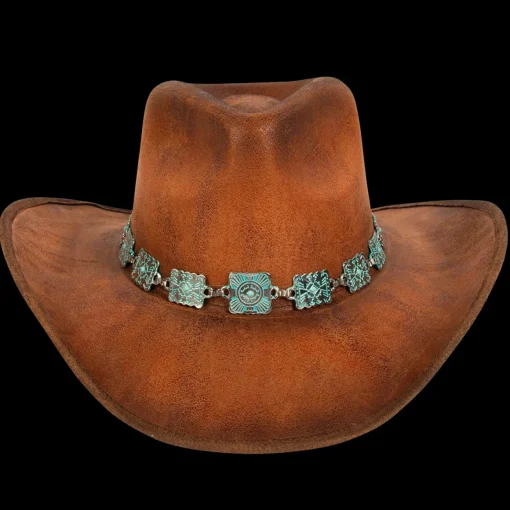 Crafted With A Tear-Drop Crown And An Upturned Brim, Lasso Is A Classic Western-Inspired Hat With Added Texture. Adorned With A Turquoise Metal Engraved Band That Pops Against The Neutral Hues.