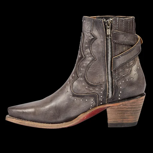 Breaking All The Rules – Morgan. Constructed With 100% Full-Grain Leather, This Ankle Bootie Displays Handcrafted Detailing At Every Curve, With Its Silver Studs, Criss-Crossing Heel Strap, And Classic Snip Toe. Finished With A Working Zip Closure And Gore Backing For Additional Flexibility.