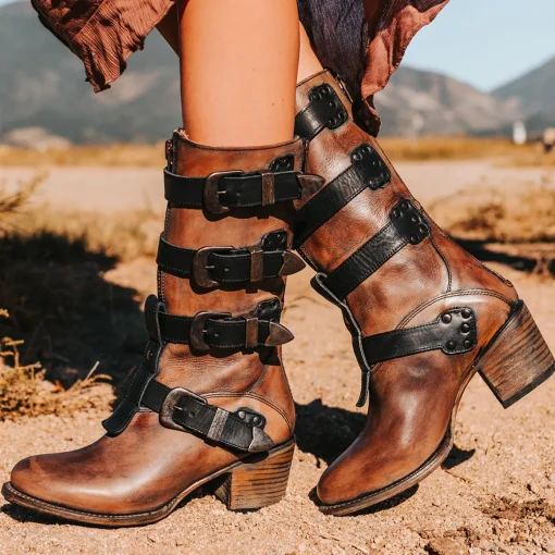 Notorious For All The Right Reasons. Distinguished By A Mid-Calf Silhouette, This Boot Is Equipped With A Spotlight Of Silver-Toned Metal Buckles. Crafted With A Double Zip Closure, Mid-Block Heel, And Round Toe.