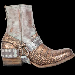 Ramone Is “Wanted” For Beingbold And Rebellious. This Full-Grain Leather Ankle Bootie Is Constructed Witha Western Shaft Crown, An Inside Zip Closure, And Paired With An Outside Welt. Finished With An Embellished Harness, Making Ramone A High Reward Item.