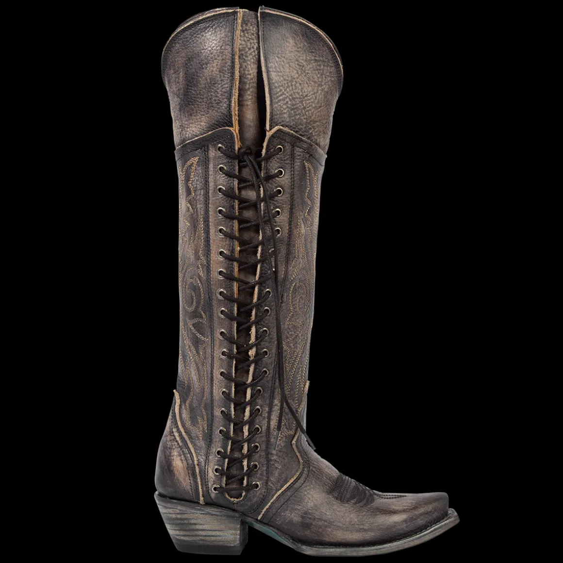 Western By Design, Wesley Brings Traditional Elements Andblendsthem With A Tall Modern Silhouette Displaying Elegance With Every Step. A Functioning Half Zip Closure, Adjustable Side Lacing, And Snip Toe Complete Thisfull-Grain Leather Style.