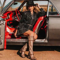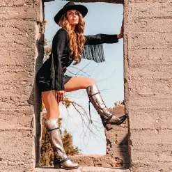 Handcrafted With Contrasting Leather And Suede Uppers, This Ankle Bootieis Constructed With A Front Fashion Zipper For Added Dimension And Texture. Framed With A Snip Toe And Low Angular Heel, Whip Takes Inspiration From Western Design And Features An Inside Zip Closure, Pull Strap, And An Engraved Buckle Strap To Ensure A Comfortable Fit.