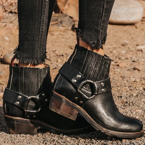 Harness The Wild West In The Whiskey. A Modern Square-Toe Silhouette Is Paired With Asturdy Rubber Tread Sole And Features An Iconic Silver Metal Hardware Harness. Its Pull-On Design Includes A Leather Back Pull Tab And Elastic Gore Sides For Effortless Styling.